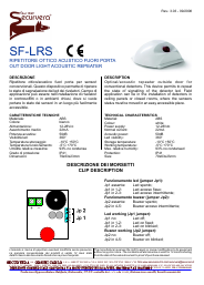 SF-LRO Ripetitore ottico indirizzato. Segnala tramite led rosso alta luminosità, incendio o allarme. Stato sistema. Grado IP40. Adatto fuori porta. SF-LRS Ripetitore ottico e sonoro convenzionale. Segnala incendio o allarme: oltre al Led, anche tramite cicalino da 50 dB. Alimentazione tramite loop. Assorbimento 22 mA. EN 54-17. Le rimanenti caratteristiche sono identiche a SF-LRS. |
