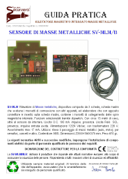 SV-MLM Rilevatore di Masse metalliche, Elaboratore di spire magnetiche interrate. Funzioni selezionabili tramite dipswitch. Spira 5X2 con di 10 metri di cavo, sensore magnetico da interrare. Uscita O.C. 100 mA. Uscite Relè SCL continua presenza sosta, 1 impulso indica il passaggio, di un mezzo metallico. Alimentazione 220 V. Assorbimento max 17 mA. Utilizzo: rileva il passaggio o la sosta di mezzi metallici; per semafori, cancelli, altro. Contenitore ABS. Dimensioni L226XH156XS75 mm. Peso 670 gr. SV-MLB Rilevatore di Masse metalliche, Elaboratore di spire magnetiche interrate. Alimentazione 12/24 Vacdc. Le rimanenti caratteristiche sono identiche a SM-MLM SV-SPI Spira interrata preassemblata 3X2 + 6 metri cavo. Sensore masse metalliche da interrare. Componente ricambio o aggiuntivi dell’elaboratori SM-MLM e SV-NLB SV-SW2 Spira interrata preassemblata 5X2 + 10 metri cavo. Sensore masse metalliche da interrare. Componente ricambio o aggiuntivi dell’elaboratori SM-MLM e SV-NLB |