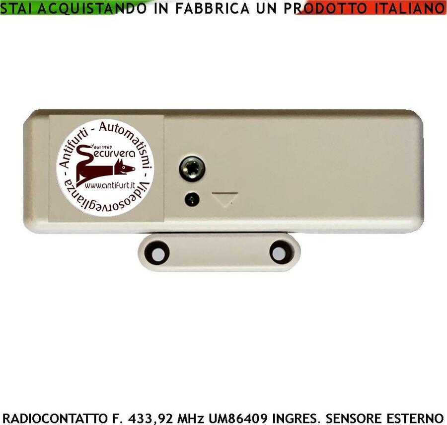 Radiosensore Magnetico Freq. 433,92 MHz, Bianco Codifica UM 86409 12 Bit, Ingresso per