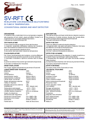 SV-RTC Rilevatore di temperatura convenzionale, soglia fissa 62°, o prefissata. Compatibile con le centrali antincendio convenzionali. che rilevano l’allarme per assorbimento; riposo 50 µA allarme 25 mA. Le rimanenti caratteristiche sono come SF-ETD