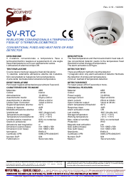 SV-RTC Rilevatore di temperatura convenzionale, soglia fissa 62°, o prefissata. Compatibile con le centrali antincendio convenzionali. che rilevano l’allarme per assorbimento; riposo 50 µA allarme 25 mA. Le rimanenti caratteristiche sono come SF-ETD