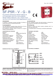 SF-XP5 Pulsante manuale antincendio indirizzato ripristinabile. Programmazione Indirizzo di riconoscimento dalle centrali SF-EPU SF-EPD SF-EPQ. Led Segnalazione di stato. In caso di incendio; pigiare il coperchio trasparente, il pulsante rimane in allarme fino a reset. Reset tramite chiave compresa. Fascetta di piombatura in plastica, per evitare abusi, o possibili manovre di allarme. Alimentazione 24 Vcc. Assorbimento 90 µA. Contenitore ABS IP40. Dimensioni L110XH105XP36 mm. Norme EN 54-11/17. Base compresa nell’ordine specificare se: SF-ZPS a parete, oppure SF-ZPI da Incasso SF-P5C Pulsante manuale colore rosso antincendio convenzionale. Compatibile con tutte le centrali antincendio convenzionali. Le rimanenti caratteristiche come SF-XP5 SF-P5V Pulsante manuale colore verde antincendio convenzionale. Compatibile con tutte le centrali antincendio convenzionali. Le rimanenti caratteristiche come SF-XP5 SF-PAG Pulsante manuale colore giallo antincendio convenzionale. Compatibile con tutte le centrali antincendio convenzionali. Fascetta di piombatura in plastica, per evitare abusi, o possibili manovre di allarme. Le rimanenti caratteristiche come SF-XP5 SF-PDP Pulsante manuale colore blu antincendio convenzionale. Compatibile con tutte le centrali antincendio convenzionali, Le rimanenti caratteristiche come SF-PAG |