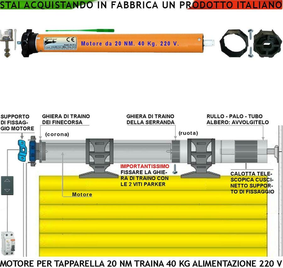 | Protezione Elettrica da Stress | Termico Interrompe Alimentazione Ripristino Automatico | Codice Articolo Modello Tipo | SV-MT1MT40KTD Motore Elettrico 220 V Una Tapparella Serranda |